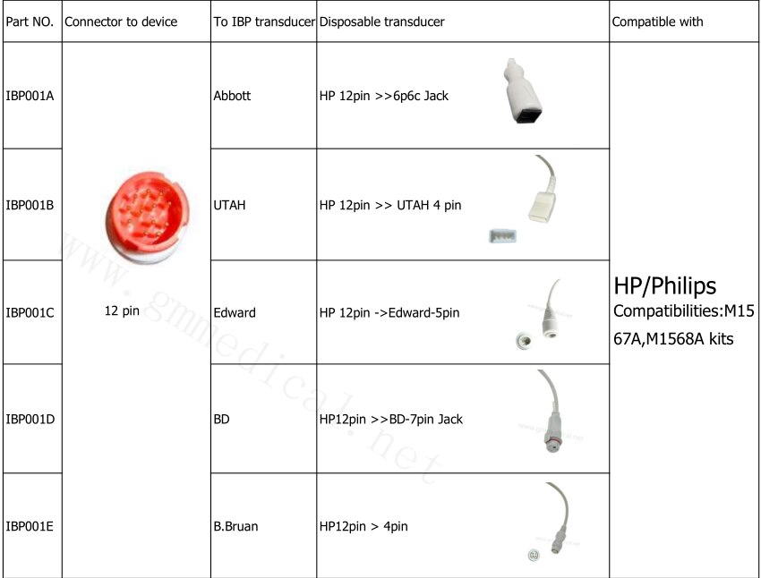 IBP001B: Câble adaptateur compatible HP -UTAH IBP, HP 12 broches>> UTAH 4 broches