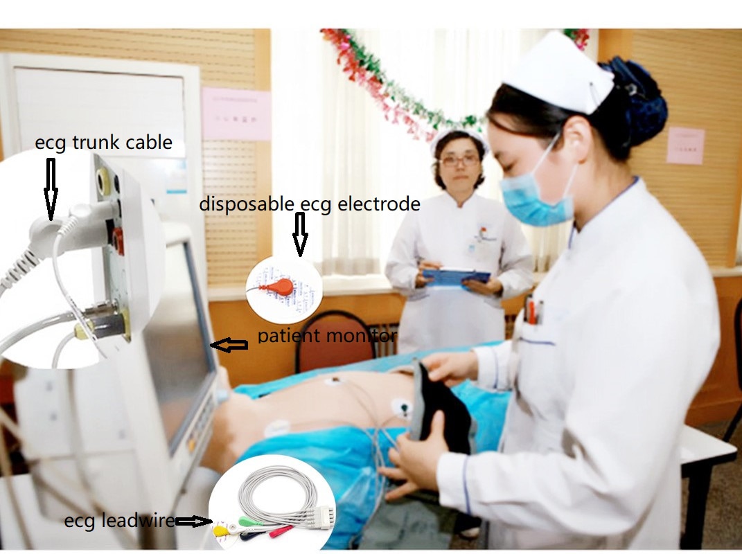 Appliquer pour moniteur multiparamétrique / machine d'électrocardiogramme / tapis roulant d'exercices ou défibrillateur, transiter par le signal de bio-électricité du corps humain. Les câbles patient et les fils conducteurs des électrodes sont utilisés pour connecter des électrodes, des cathéters et / ou des capteurs placés à des emplacements appropriés sur le patient à un dispositif de surveillance pour une surveillance générale et / ou une évaluation diagnostique par un professionnel de la santé.