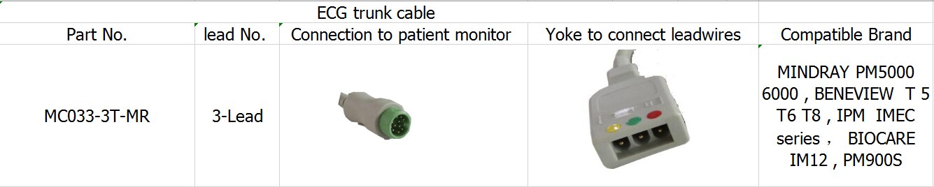 étiquette à chaud: ecg cable 3-lead trunk cable for beneview t5 t6 t8, biocare im12, pm900s, China, fabricants, customized, bulk, buy discount, low price, high quality