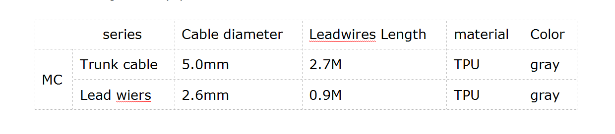 Appliquer pour moniteur multiparamétrique / machine d'électrocardiogramme / tapis roulant d'exercices ou défibrillateur, transiter par le signal de bio-électricité du corps humain. Indications d'utilisation: Le câble patient et les fils de connexion sont indiqués pour une utilisation dans la surveillance des signaux cardiaques à des fins de diagnostic et de surveillance.L'utilisation est limitée par les indications d'utilisation de l'équipement de surveillance ou de diagnostic connecté.