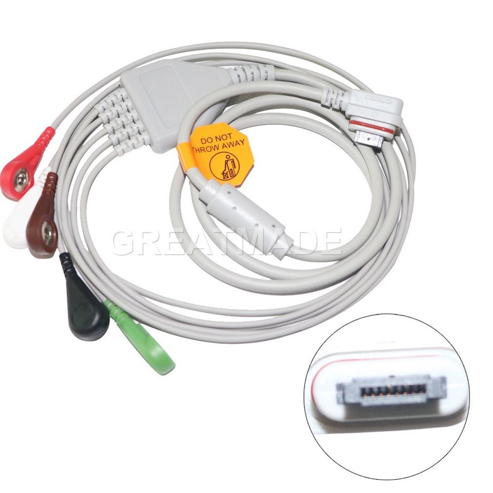 Compatibleavec: OEM no . 2008594-003 5- Lead Holter ECG Cable Cable Leadwires pour GE SEER Light, 2 canal (5-ld), aha, snap