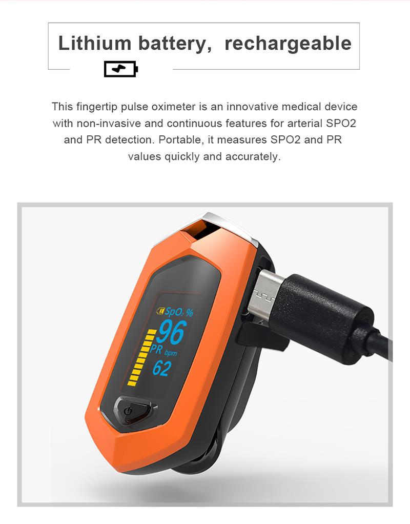 - 1 x oxymètre à doigt (batterie au lithium intégrée)